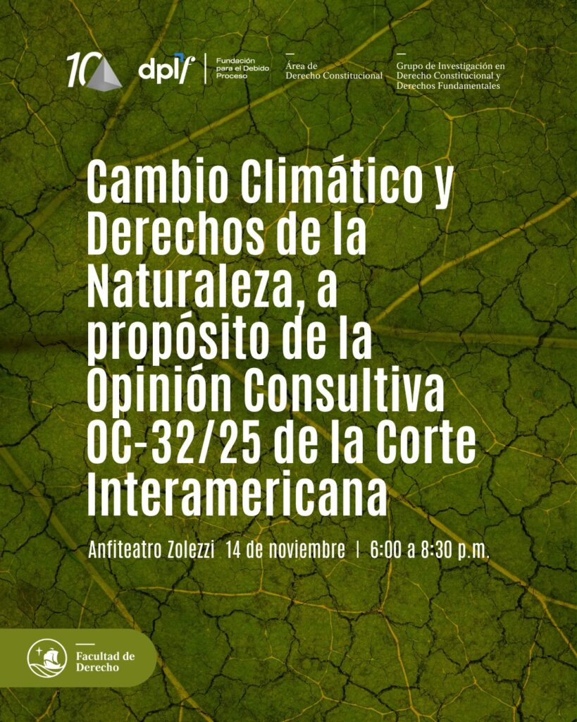 En un contexto en que los impactos ambientales amenazan no solo el equilibrio ecológico, sino también la sostenibilidad democrática, resulta indispensable reflexionar sobre las obligaciones estatales, la reparación integral y la dimensión ius cogens del derecho a un ambiente sano. Este conversatorio busca promover el debate académico sobre la emergencia climática desde la perspectiva del […]